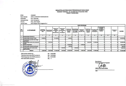 Berikut laporan realisasi penggunaan dana BOSP Tahap II Periode Juli-Desember 2025 SMA Al Amaanah KaranganyarÂ